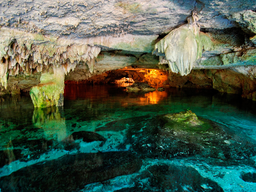 Your snorkel guide will share the best snorkeling techniques with you, and provide plenty of information about the flora and fauna of the beautiful ocean and rainforest. Begin your day by plunging into the turquoise waters of the Mexican Caribbean surrounded by exotic marine life including colorful fish, coral formations and even turtles. Then strap on your flippers to explore the stalagmites and stalactites of an atmospheric cave. Here in the gloom the water casts twinkling reflections on the rocky roof above you.