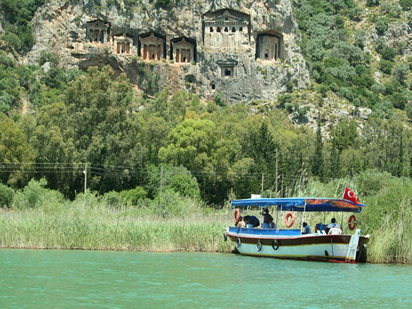 After you hop back onto the boat, enjoy a pleasant lunch on board. Filled to your hearts content, you can now proceed to soar past the Lycian tombs. These amazing royal tombs were carved into the abrupt cliffs that surround the river around the year 400bC.