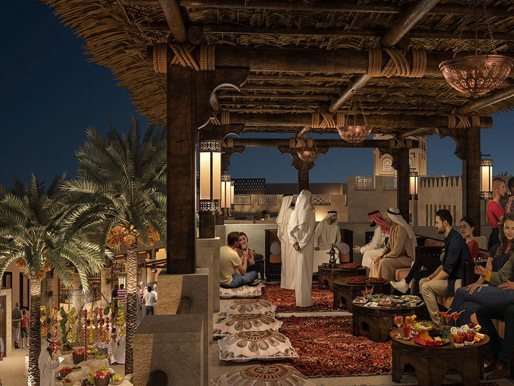 A deluxe dining experience as a sultan under the stars at Qasr Al Sultan. Newly traditional Arabic dining and entertainment destination combining luxury with nature and culture. Discover a unique culinary experience interactive live cooking stations, food bazaar and live entertainment shows. Feel the grandeur of joining the sultan table or connect with friends and family in the Arabic majlis.