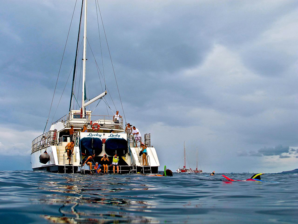 Tuck into a tasty continental breakfast with fresh baked pastries & fruit salad and savour a delicious deli lunch buffet including roast turkey, baked ham, cheese, salad, fresh fruits, and cookies. Keep hydrated with soft drinks, juice drinks, an iced water available throughout tour. For those over the age of 21, after the water sports have finished, enjoy a refreshing cold beer, a glass of house wine or indulge in Mai Tai’s.