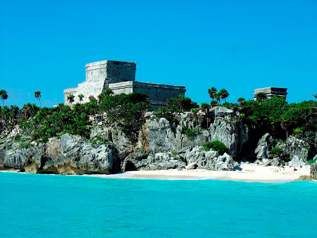The sight of the ruins of Tulum will astound you as they slowly appear over the horizon and into your line of vision. Perched atop a majestic cliff and overlooking the striking, almost unnatural blue of the Caribbean, Tulum was a walled city and, many believe, a major Mayan port. The ruins are ghostly yet stand stoically in defiance of the passing of time. Contemplate the amazing frescoes that cover the wall of one temple; see the ominous Temple of the Descending God; admire the Temple of the God of Winds; and, last but not least, discover the magnificent El Castillo, the temple built upon a cliff with commanding views of the coast.