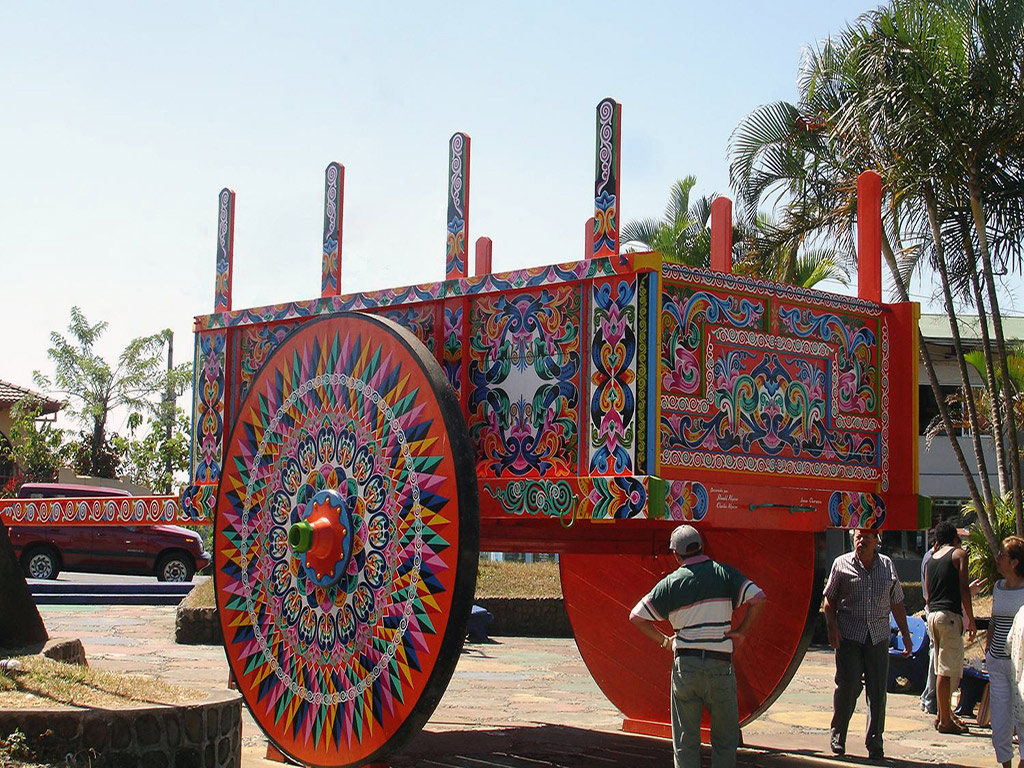 Finally, it's on to neighbouring Sarchi, known as the cradle of Costa Rican handicrafts. The streets are lined with the artwork of the locals, who specialise in painting bright patterns onto objects such as rocking chairs, chests, masks and jewellery. Yet it's for the painted and decorated oxcarts, huge brightly coloured pieces of farm equipment transformed into art, that the town is known. Nowadays, the oxcarts have become the perfect symbol for the Costa Rican character, simultaneously deeply practical and yet full of artistic verve and a riotous sense of fun that intoxicates visitors.