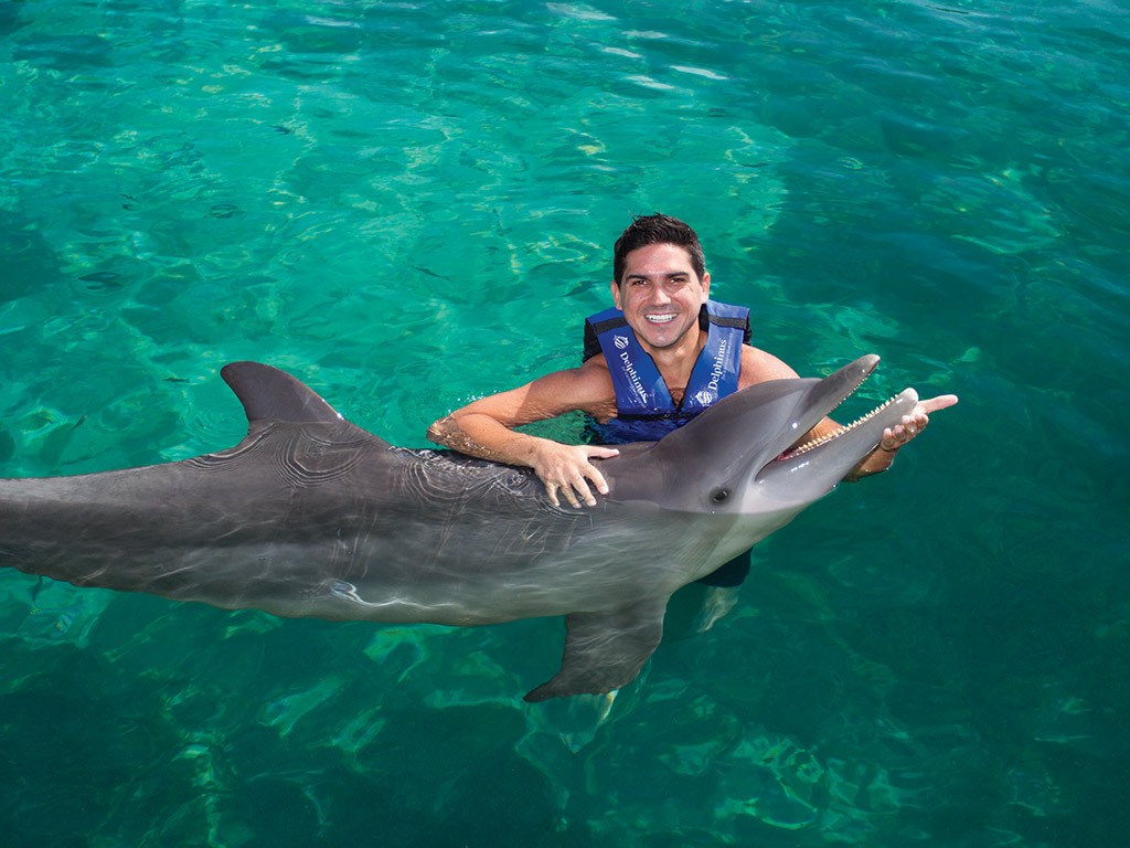 - Ride Program: Welcome of the Dolphin, Anatomy of the Dolphin, Physiology of the Dolphin, Behaviors: Kiss of the Dolphin, Gaze, Hug, Singing, Applause, Tail Flicks, Free Jumps, Water Fight, Free Swim with the Dolphin controlled, Dolphin Ride Swim and Farewell