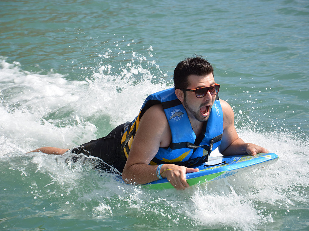 Enjoy snorkelling and interacting with stingrays (barbs removed), glass bottom kayaking, and captaining your own Mini Boat in the Caribbean Sea. Take a stroll and interact with exotic birds, snakes and other animals on the Jungle Trail. Watch the spectacular Shark Show and learn about the marine world.