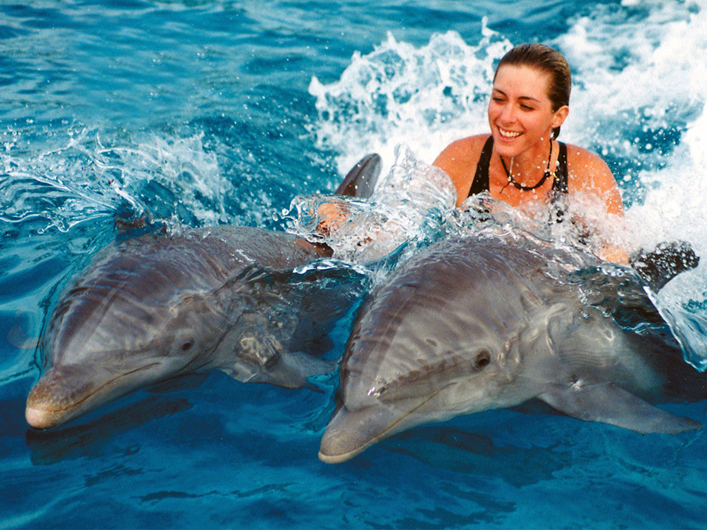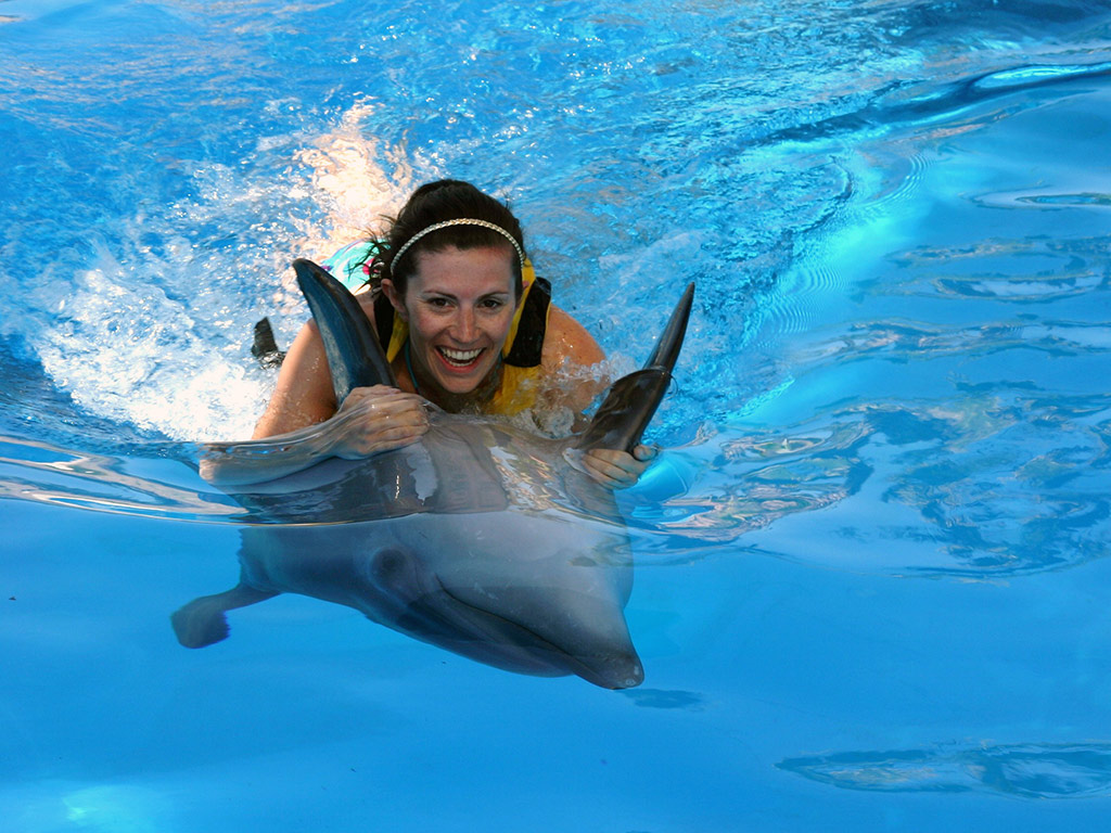Swim the dolphins: it lasts approximately 5 minutes but there is extra time in the venue for taking photos, using the snack bar etc. Total duration including transfer there and back from hotels is about 3 hours.