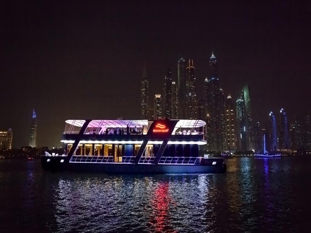 What better way to fall in love with the skyscrapers that adorn the spectacular Dubai Marina than with an unforgettable dinner cruise. Be captivated by the buildings illuminated at night as you glide calmly along its waters whilst feasting on a delicious buffet dinner. What better way to fall in love with the skyscrapers that adorn the spectacular Dubai Marina than with an unforgettable dinner cruise. Be captivated by the buildings illuminated at night as you glide calmly along its waters whilst feasting on a delicious buffet dinner.Receive a warm red carpet welcome with Arabic sweets and start cruising experience under the illuminated sky line of Dubai marina a canal city in the venetian tradition, carved along a two-mile stretch of Permian gulf shoreline. Where you will enjoy the most inspiring sights and landmarks of Dubai and have a beautiful view of the city in the light. The main sights getting cover are the Dubai Marina Yacht Club, Marina Mall Dubai, the world's biggest man-made island, Palm Jumeirah that hosts a number of international five-star hotels with their magnificent architecture and private beaches. Enjoy an international buffet dinner experience with live music on board. Redeem informationVoucher type: Not neededVoucherless. You don’t need to bring any voucher (digital or printed)!LocationStart point: Pier 7Pier 7 Valet is based in the Dubai Marina Mall. You need to take a sharp right straight after the mall and follow the sign for Pier 7 restaurant. End point: Same as the starting pointScheduleOpening dates20:00 - 22:30Duration: 2 HoursGuide optionsGuide type: Not includedTips type: OptionalGroup type: SharedGroup size: 20 PeopleRequirementsRemember to bring the voucher and valid photo ID with youRecommendationsCasual wear