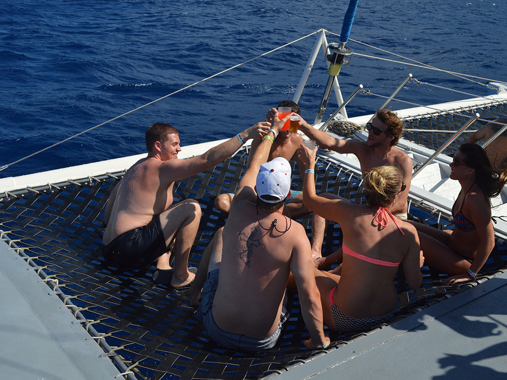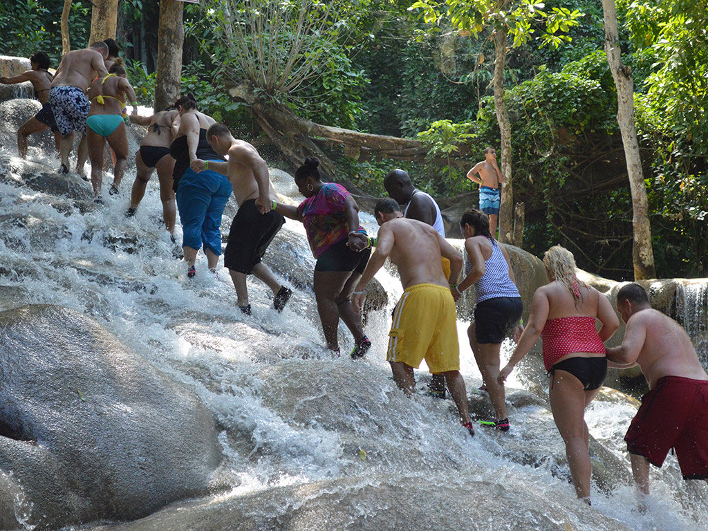 Step aboard our beautiful Catamaran in style and come sail away with us. Sixty-five feet long and twenty-nine feet wide, from her shaded area to her open spacious decks, you experience the Caribbean at its finest. Along the way, you will snorkel and explore our reefs or just go for a dip in our warm seas. Then, you’ll arrive at a beautiful beach where the world famous Dunn’s River Falls meets the sea.