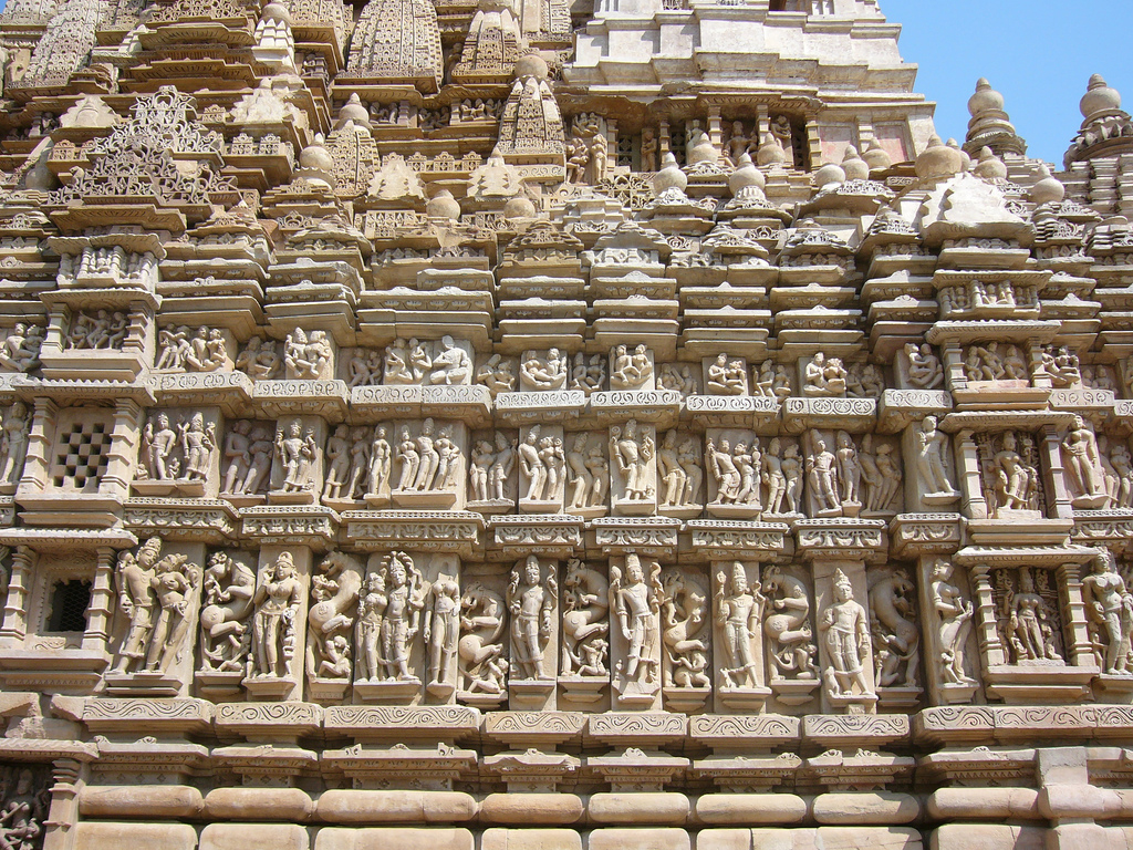 The temple is structurally similar to the Hindu temples of Khajuraho. In fact, it is this Jain-Hindu combination that is singularly interesting about the Eastern Group of temples. Only a century old, Shantinath is the most recent of all the temples in Khajuraho. Visited by the Digambar Jains, the temple houses a four and a half metre statue of Adinath. The Ghantai Temple, mostly in ruins now, has fine columns and chains and bells, with a figure of a Jain goddess on a garuda. Mainly built of granite and sandstone, the temple of Brahma and Hanuman is one of the oldest temples in Khajuraho.