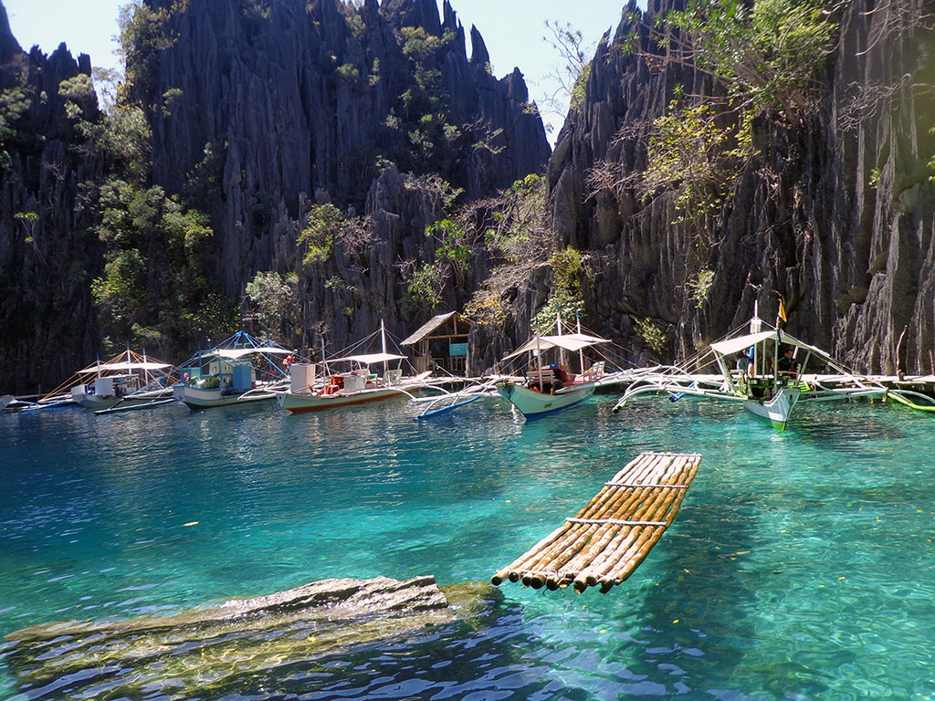Small Lagoon - Located on the cove of Miniloc Island. As you enter a small swim through hole on board a kayak or swimming through, you will see the tranquil turquoise-green waters of Small Lagoon of its orchid-lined limestone walls, a showcase a kaleidoscope of marine life.