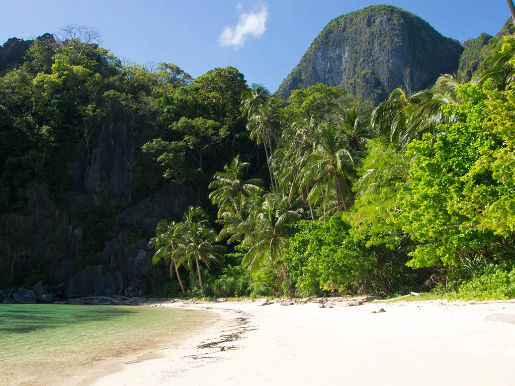Matinloc Island - Matinloc Island, the longest slim island in El Nido, has a secret beach, which is a pocket of white sand beach at the corner of a sinkhole,that is inaccessible by boat and surrounded by steep rock walls. To reach it, divers must swim underwater through a narrow crevice in a rock wall. At noon, the sun streams in through the opening, allowing a play of light and shadow against its limestone walls.