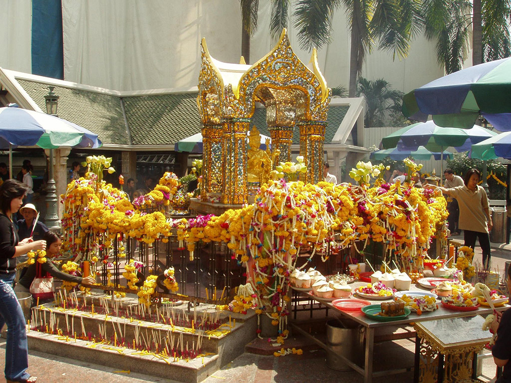 After an early evening pick-up from your hotel we’ll head straight for the Hindu shrine at Erewan. This holy place houses a statue of Phra Phrom, the Thai representation of the Hindu creation god Brahma. Don’t miss the performances by colourful Thai dance troupes, who are hired by the faithful in order to see their prayers answered. The temple dates from 1956 is a feast for the senses thanks to the many flowers and clouds of incense left by the worshippers.