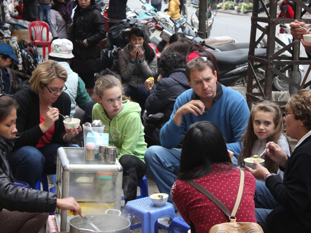 We start our evening Hanoi street food tour at the city’s largest covered market, Dong Xuan. Along the perimeter of the market, dozens of street hawkers sell a staggering variety of produce from live seafood to exotic fruits and spices. We start our evening Hanoi street food tour at the city’s largest covered market, Dong Xuan. Along the perimeter of the market, dozens of street hawkers sell a staggering variety of produce from live seafood to exotic fruits and spices.Your expert local guide will give you an insight into the intricacies and traditions of Vietnamese food culture including details on ingredients and historical backgrounds of popular northern dishes. We eat as we go, trying seasonal fruits and sampling a tasty French-inspired snack from a street cart. Walking through the maze of bustling streets that make up Hanoi’s Old Quarter, we tempt our tastebuds with the famed Hanoi dish Banh Cuon at a local eatery. Watch in awe as the skilled chefs demonstrate for you how this tasty dish is put together.