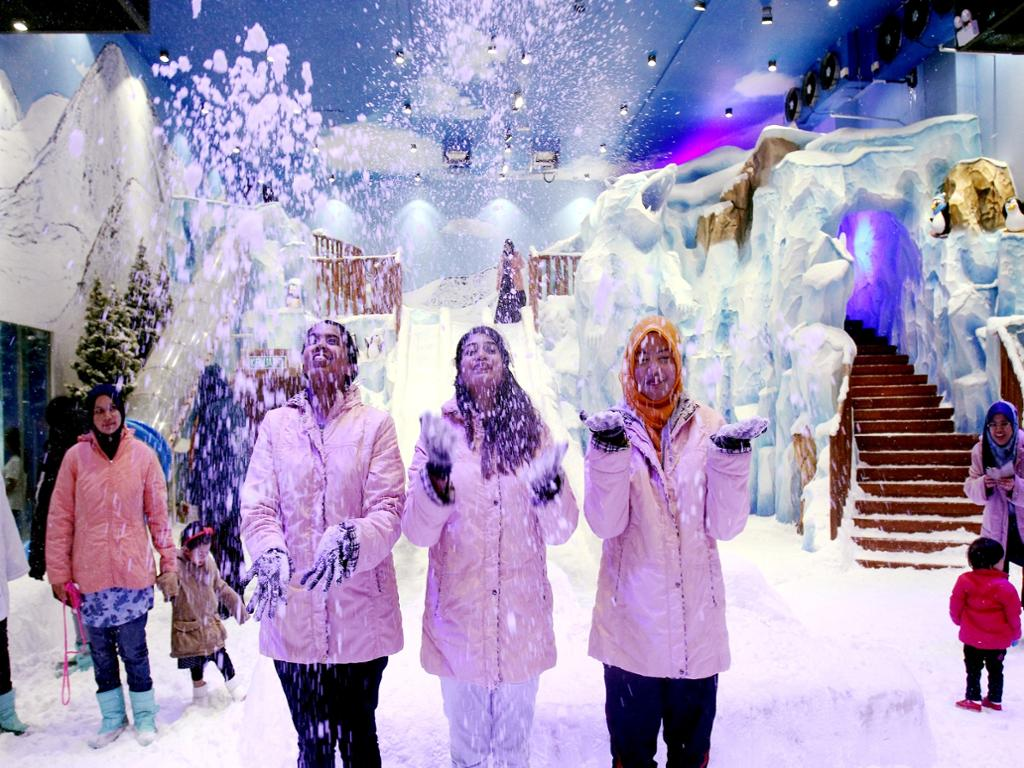 • SnoWalk - A below 5 degrees Celcius Artic environment with ice sculptures and rides. Here you will find igloos, ice houses, slides, a mini-bobsled run, snowmen, ice penguins, a bar made of ice (no beverage served), various ice sculptures and plenty more LED lights.