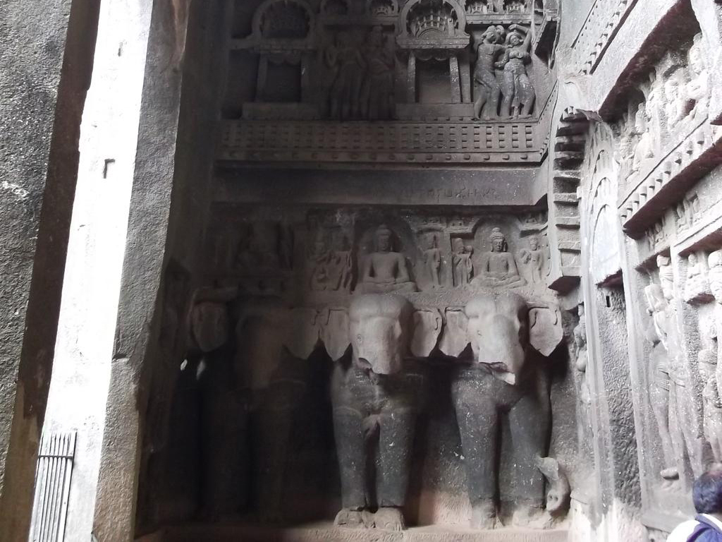 Then, we head out to the Karla Cave located opposite the Bhaja Caves. The caves are a brilliant example of Buddhist architecture. Among the most impressive caves, they have the biggest and oldest chaitya in India dating back to 80 BC! The prayer hall has several intricately designed figures of humans, animals and Gautama Buddha.