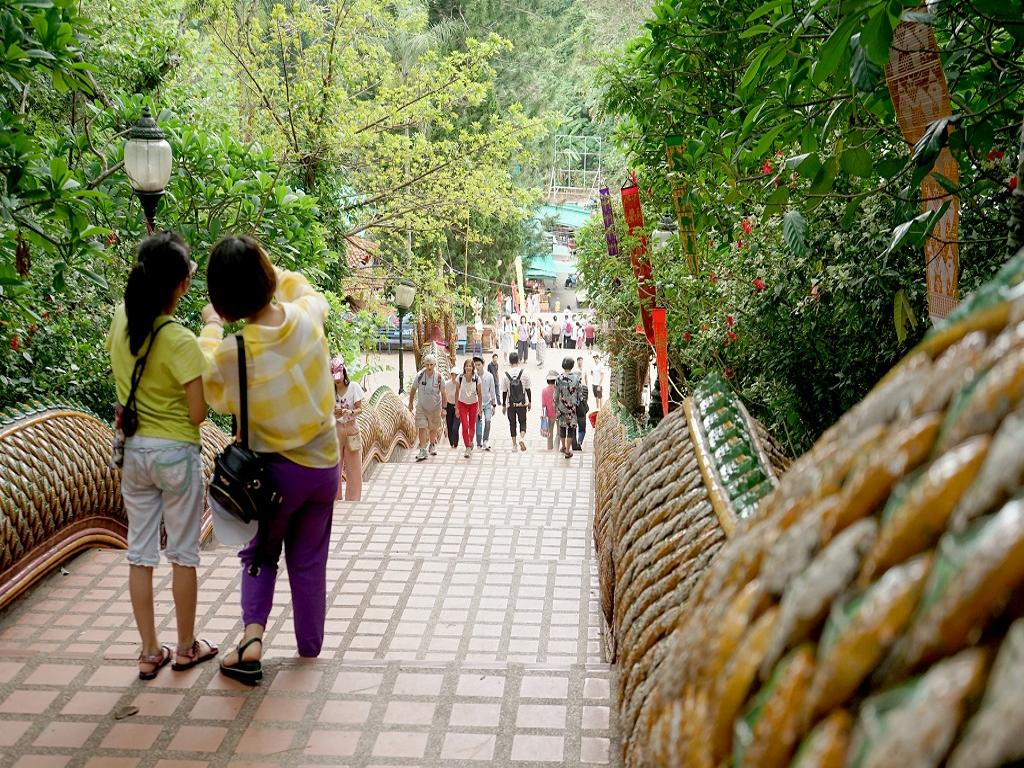 Head inside, where you will find the symbol of the city, the copper-plated Chedi that is topped by a five-tier gold parasol, which contains relics of the Lord Buddha. From the terrace on a clear day, you will have a fine panoramic view of the entire city. Once you get there, that final climb up the 306 steps of the Naga staircase (a Thai mythological Dragon-headed serpent) will have been worth it!