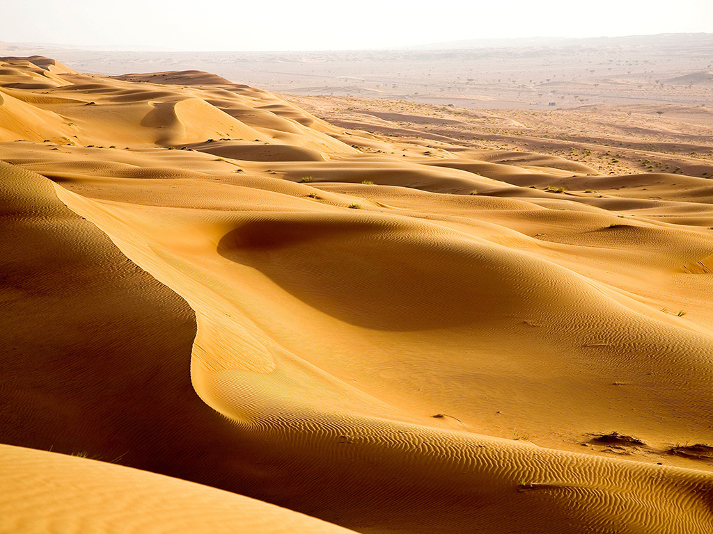 Running south from the Eastern Hajjar Mountains to Arabian Sea, the Wahiba Sands, described a Sand sea, stretches almost 200 kms in length and about 100 kms in width. The dunes rise above 100-150 meters in different shades of color and shifting sands, is the perfect place for both the romantic and the adventurous.