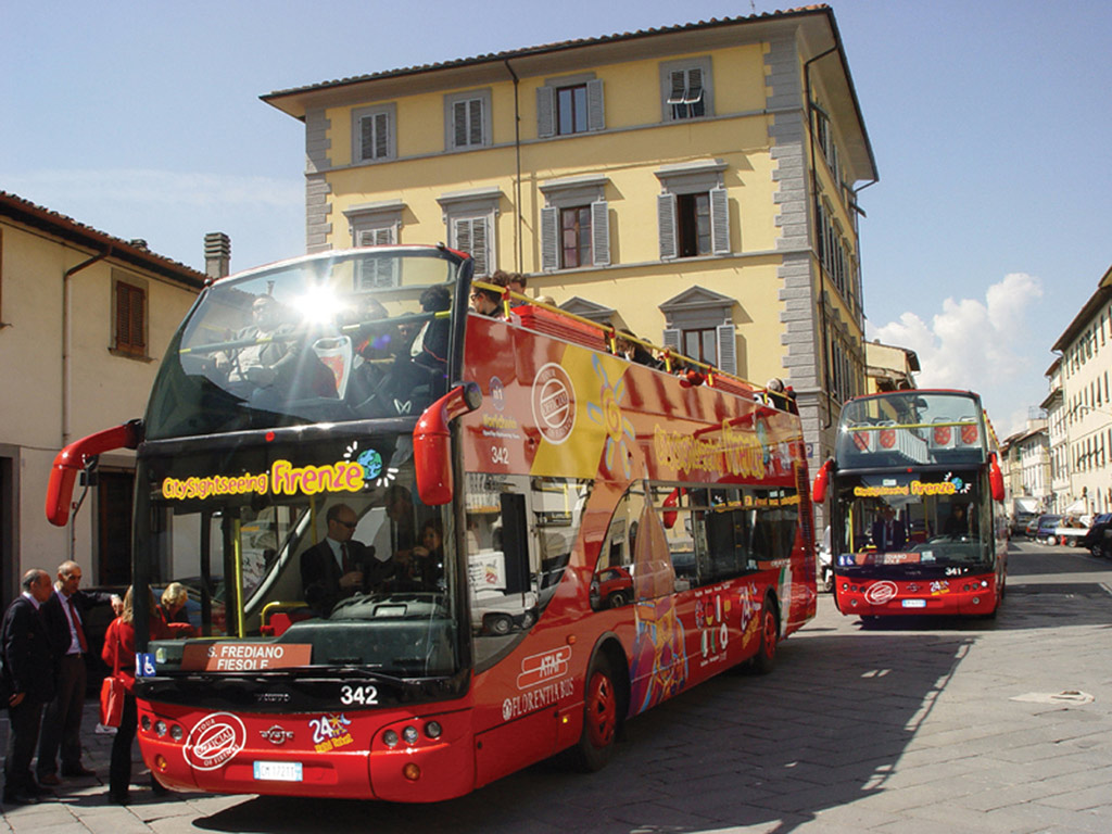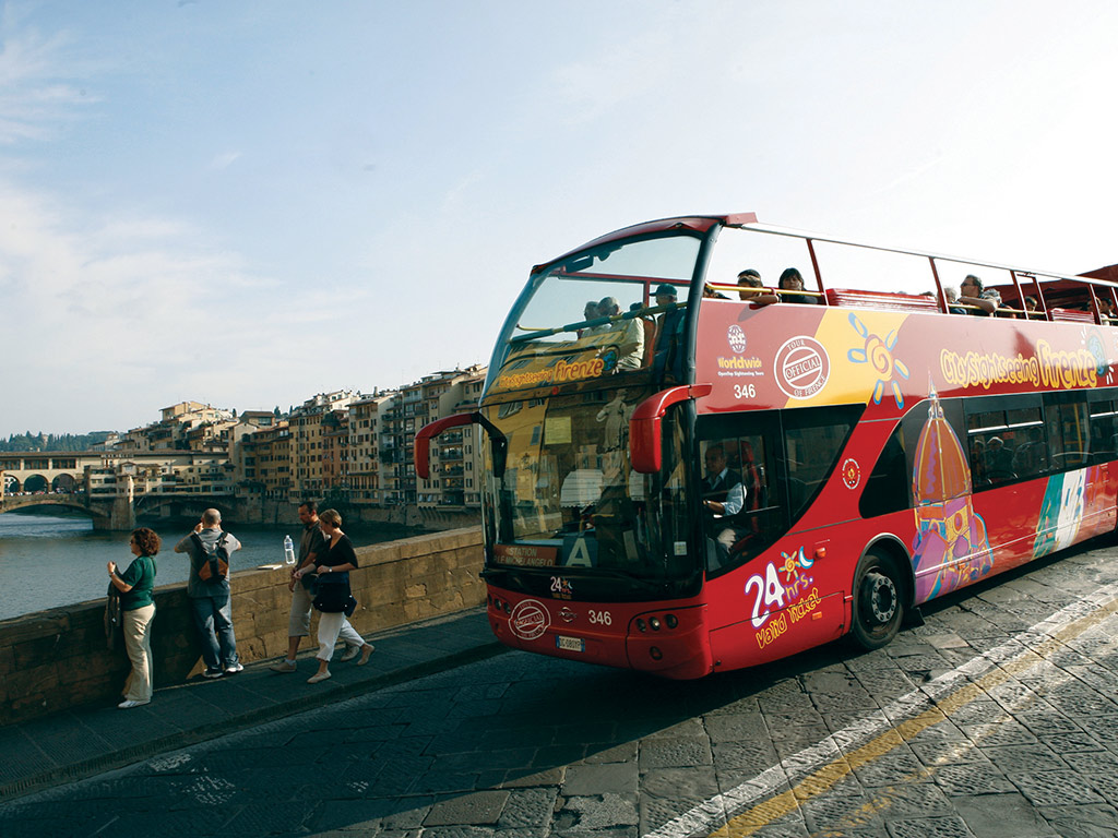 Delve into the heart of the romantic region of Tuscany, wherein lies the most representative city of the Renaissance: Florence. Widely acknowledged to be one of the most beautiful cities in Italy, as you explore the stony streets of Florence aboard our comfortable tour bus you will feel like you are exploring the ideal Italy you had always dreamed about; musicians playing serenades on the streets, breath-taking architecture, more high culture and history than can fit in any library and, of course, delicious Italian food. Delve into the heart of the romantic region of Tuscany, wherein lies the most representative city of the Renaissance: Florence. Widely acknowledged to be one of the most beautiful cities in Italy, as you explore the stony streets of Florence aboard our comfortable tour bus you will feel like you are exploring the ideal Italy you had always dreamed about; musicians playing serenades on the streets, breath-taking architecture, more high culture and history than can fit in any library and, of course, delicious Italian food.Highlights- Create your own itinerary - Hop on and off as many times as you want - Explore the ancient Etruscan-Roman archaeological area Explore the cradle of Renaissance at your own leisure as you enjoy unlimited travel through the city on a hop-on hop-off open top bus. Surrounded by the Apennine mountain range, Florence lies snuggled in a fertile valley around which the charming Tuscan vineyards and olive groves reach out towards the horizon.