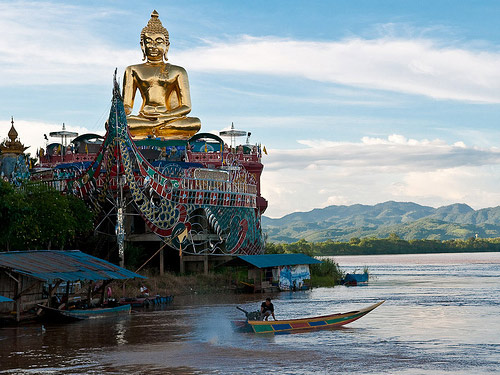 The tour continues into Golden Triangle territory, visiting Sop Ruak, where the Ruak river converges with the mighty Mekong and borders of Myanmar, Thailand and Laos converge. This is the apex of the Thai portion of notorious Golden Triangle, but nowadays this side of the border is less wild. Continue on to the ancient town of Chiang Saen, which features many temples ruins haphazardly scattered about town, the Chiang Sean Buddha images with their fine oval faces are said to be the earliest expression of a purely Siamese sculptural style.