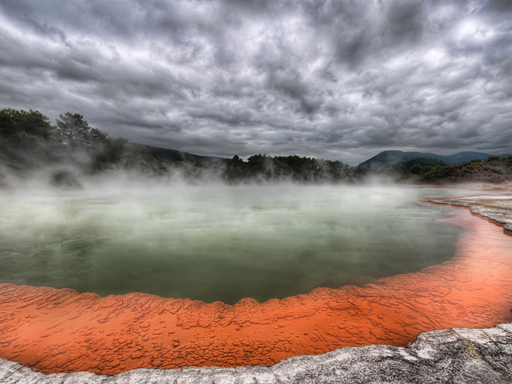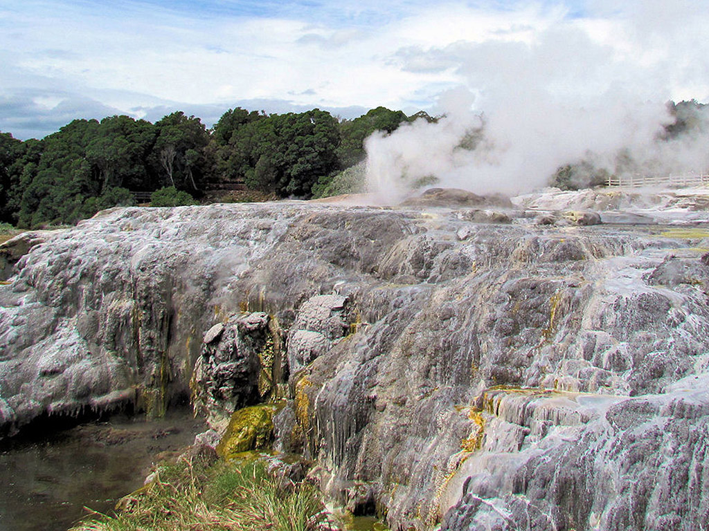 The tour continues in the afternoon with a pleasant drive to Rotorua. En route we’ll pass through the beautiful Fitzgerald Glade where the roadside trees arch overhead to form a tunnel of natural greenery. Once at Rotorua you will have plenty of time to explore this lakeside town for yourself. Don’t miss the Whakarewarewa Thermal Reserve with its silica terraces, bubbling mud pools and unique geothermal vegetation, not to mention the world-famous Pohutu Geyser. The Maori Arts and Crafts Institute is also well worth a visit with its fascinating exhibition of carvings and weaving.