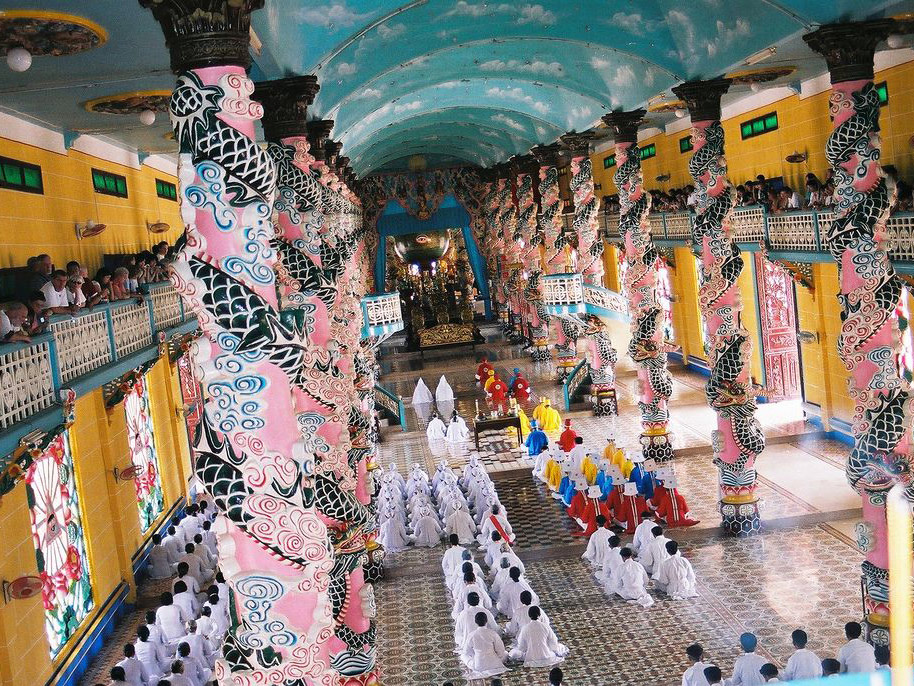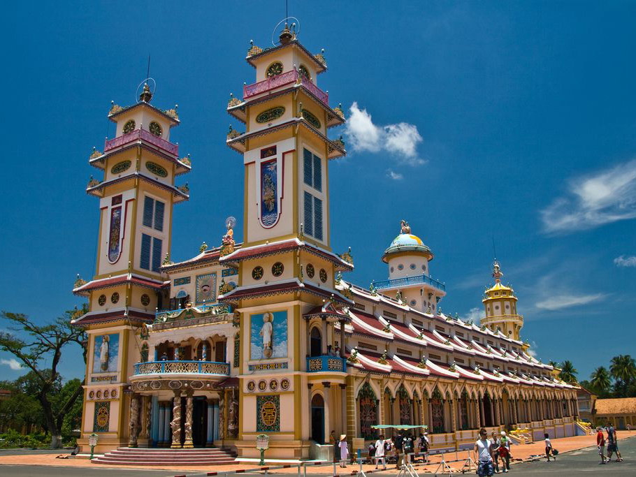 At midday, Enjoy a traditional Mekong Delta lunch at a local pagoda prepared by our private chef (includes fresh spring rolls, caramelized pork, chicken with ginger, and the Mekong Delta delicacy, Elephant Ear fish). After lunch, you will visit an orphanage run by Buddhist monks. Then, visit a colourful Cao Dai Temple, one of the highlights of our Mekong Delta Tour.