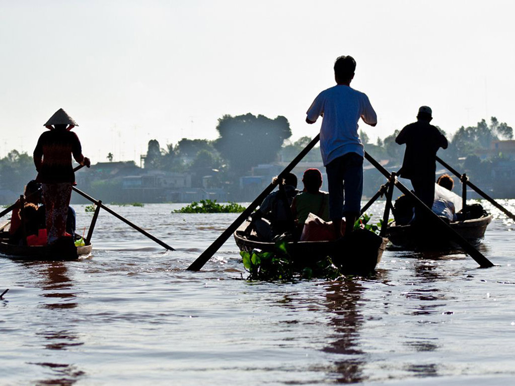 Reach the idyllic watery expanses of the Mekong Delta itself, known as the Delta of Nine Dragons for the 9 tributaries that splinter from the main Mekong River. Turn off the delta into small, winding canals of the Thu Thua area, shaded by a canopy of foliage as you drift along lazily.