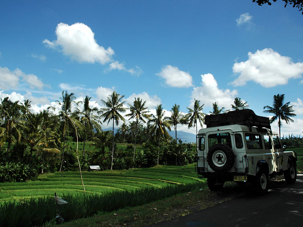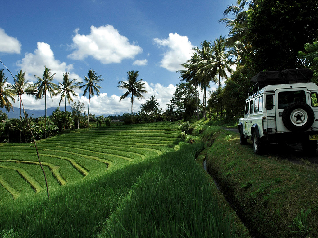 Travel by legendary Land Rover, on tiny country roads and tracks, through terraced rice fields and untouched rainforest to the real heart of Bali. Visit a traditional farmhouse where the picnic basket will be open while you discover the fragrant spices in a tropical garden. Explore an ancient quarry where stones still cut by ancestral methods to build the temples and shrines of the island.