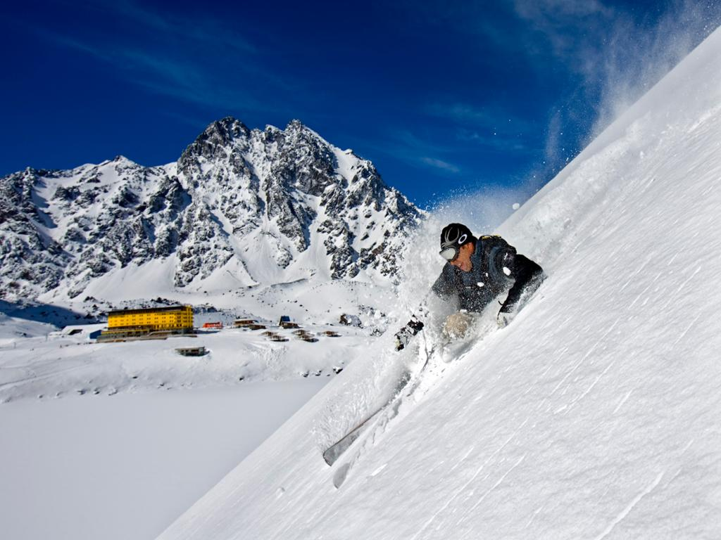 Located at 2,880 meters (9,449 ft.) above sea level on the international road that connects Santiago with Mendoza, Argentina, 2 hours away from Santiago, the ski center is close to Aconcagua and around the famous Laguna del Inca.