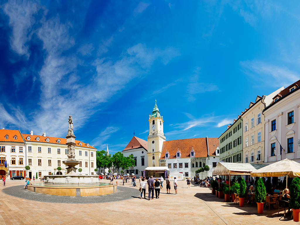 Brilliant Bratislava is barely an hour away from Vienna and this day tour is the ideal way to discover the Slovakian capital’s many delights. Enjoy a walking tour through its historic streets and then hop aboard a boat for a cruise along the Danube to enjoy a new perspective. This picturesque city is one of Europe’s few remaining hidden gems. Brilliant Bratislava is barely an hour away from Vienna and this day tour is the ideal way to discover the Slovakian capital’s many delights. Enjoy a walking tour through its historic streets and then hop aboard a boat for a cruise along the Danube to enjoy a new perspective. This picturesque city is one of Europe’s few remaining hidden gems.Highlights- Stoll through the heart of Bratislava - Admire the beautiful pink Primate’s Palace - Top off your experience as you zoom down the Danube River Bratislava’s position in the heart of Europe has made it a melting pot of cultures and the city boasts many Hungarian and Austrian features as well as Slovakian.