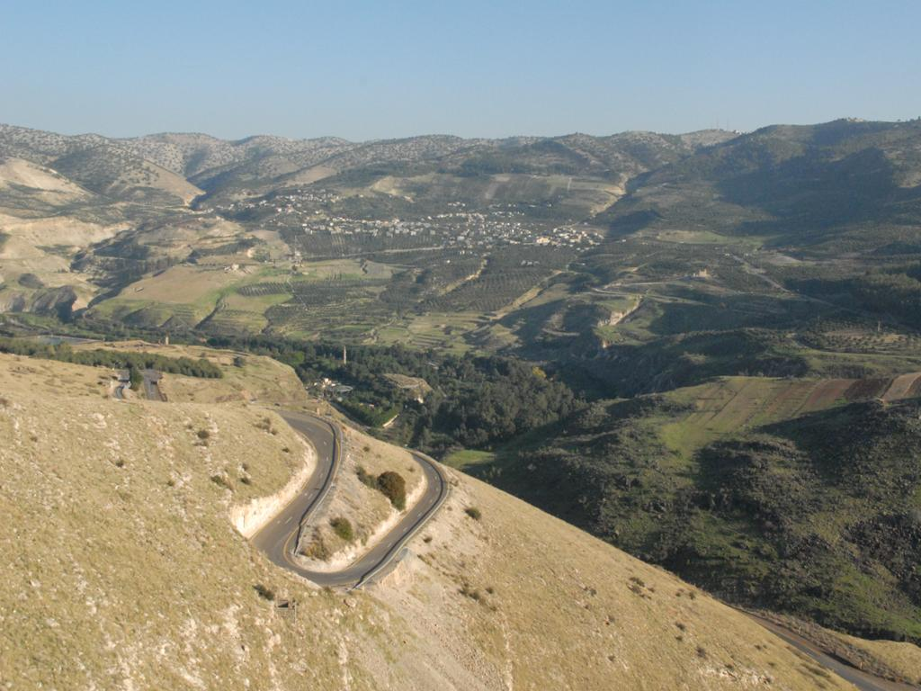 We cross the Jordan River at the foot of the Golan Heights and begin our ascent passing through Hamat Gader. Today Hamat Gader is a popular spa destination just as it was for the Romans almost 2000 years ago. We continue on through the lush green countryside until we reach the Shalom Observatory. From here we have a stunning view looking back at the Sea of Galilee beneath us. It is easy to understand the strategic importance of the Heights as we see the Israeli city of Tiberias in the distance on the edge of the Sea of Galilee.