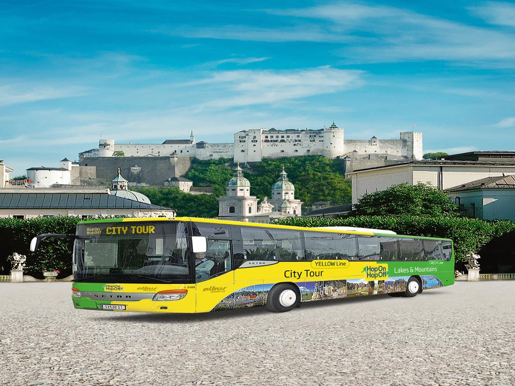 Discover the beauty of Salzburg as you travel around the city on a panoramic hop on-hop off bus tour. Choose between a 1 day o 2 days ticket and explore this fascinating destination at your own pace! Discover the beauty of Salzburg as you travel around the city on a panoramic hop on-hop off bus tour. Choose between a 1 day o 2 days ticket and explore this fascinating destination at your own pace! Highlights- Admire Salzburg’s most beautiful landmarks - Make your own itinerary with 12 stops to explore - Interesting audio guide available in 13 languages Hop on to this eye-opening bus tour and behold the beauty of Salzburg’s many palaces, churches, monuments and gardens.