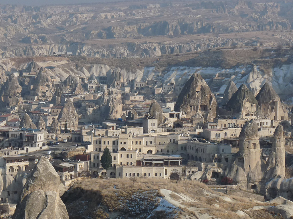 Pasabag Panaroma: The landscape seems foreign alien almost. You could almost expect Captain James T round a corner followed by a reptilian adversary. One can only imagine Kirk’s knowing reaction to the shapes of these rock formations. Although the landscape looks inhospitable in the extreme the soil is mineral rich. This makes it an ideal place for growing fruit and vegetables which means the whole area of Kapadokya meets a lot of Turkey’s agricultural needs. in Paşabağ where you can see mushroom-like fairy-chimneys with multiple caps and stems situated in the middle of a vineyard. Then walk through Pasabaglar, used to be known as Valley of Monks. Avanos Seramique: After Çavuşin you go to Avanos, a small town known for its ceramics. Avanos (the former names are Zu-Vinessa or Venessa), situated by the river of Kizilirmak or Halys River from ancient times as Herodes called it. Avanos which was settled on both edges of the Red River is one of the tourism center in the region. Here is the places inwhich ateliers of ceramics are worked, soil is shapedand cooked in order to make pots and pans. No one cand find such nice handmade arts in anywhere in the world at this price. There you have lunch and also visit a ceramics workshop where you can see how pottery is made and decorated.