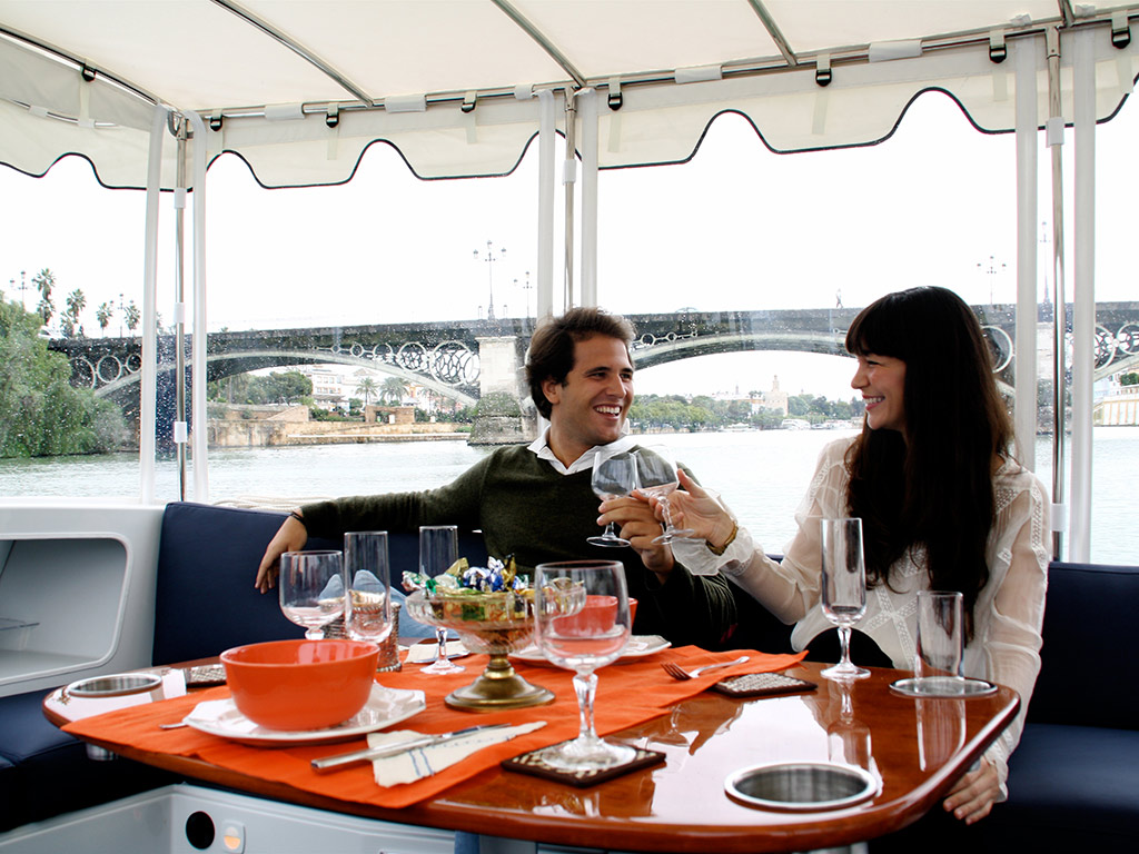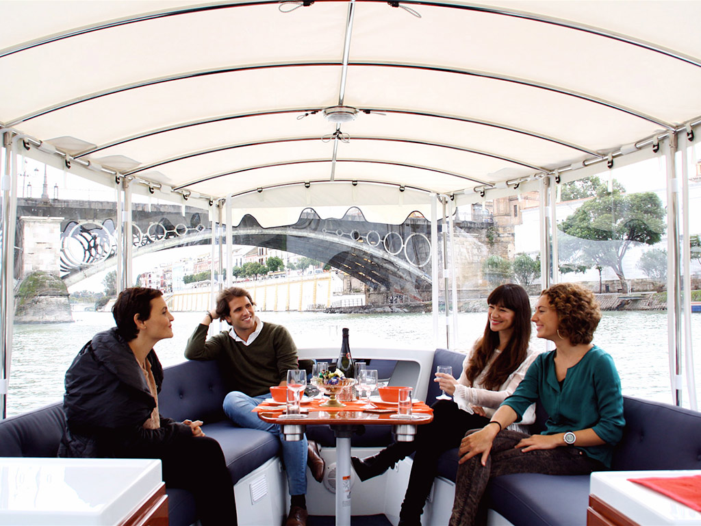 This river cruise is unique in Spain - just sit back and relax as you enjoy the exclusive service in the incomparable setting of the historic River Guadalquivir. Not only do we offer you silent, gentle and ecologically friendly river cruises, but we have also paid great attention to every detail with a series of onboard services including wine and liqueur tasting making every cruise unforgettable.