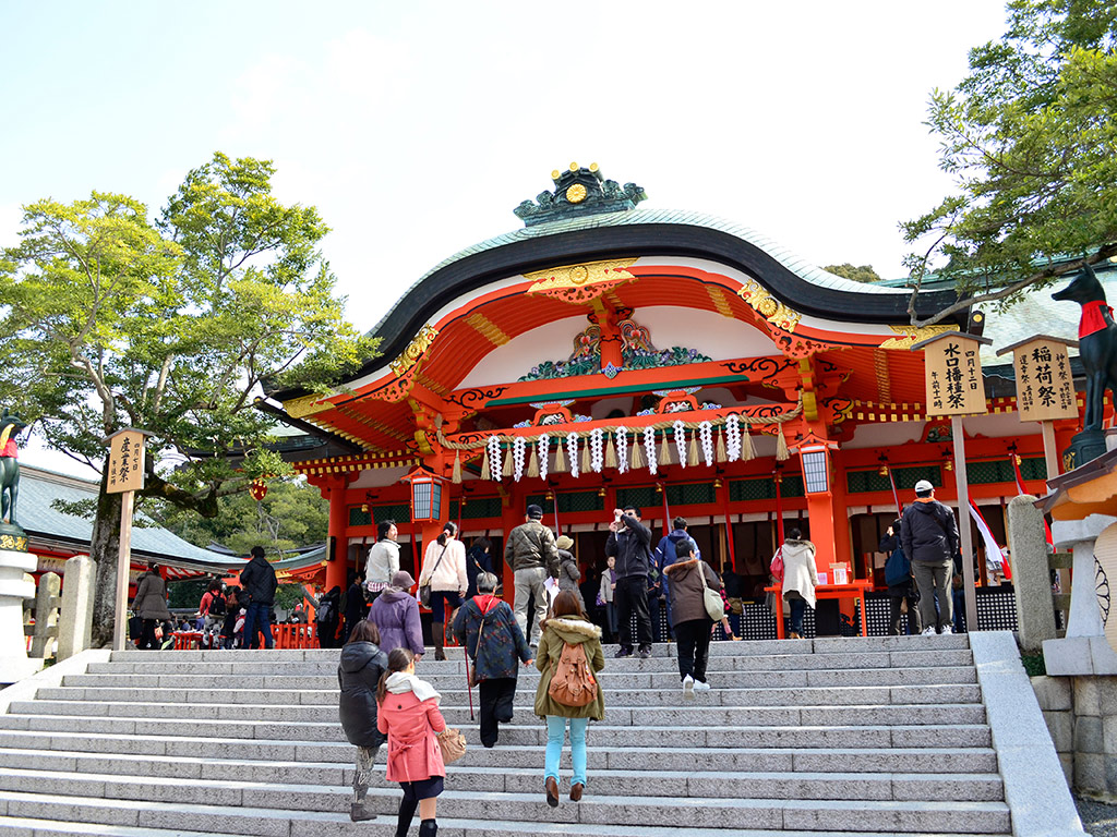 Next we walk through a nice local residential neighbourhood to the Fushimi Inari Shrine. Home to a seemingly endless stretch of iconic red torii gates spread across a thickly wooded mountain, this shrine is a world unto itself. Walk through snaking corridors of red gates, made famous in the film ""Memoirs of Geisha"", stopping to admire the shrines and many fox statues. Major photo opportunity alert!