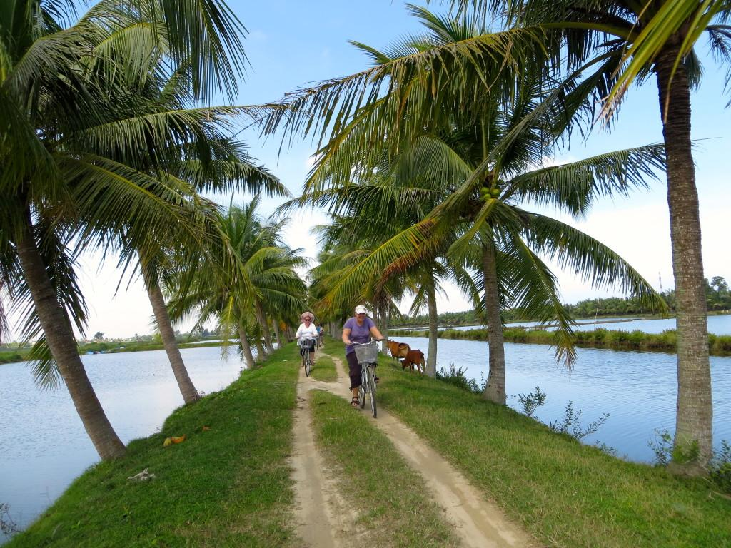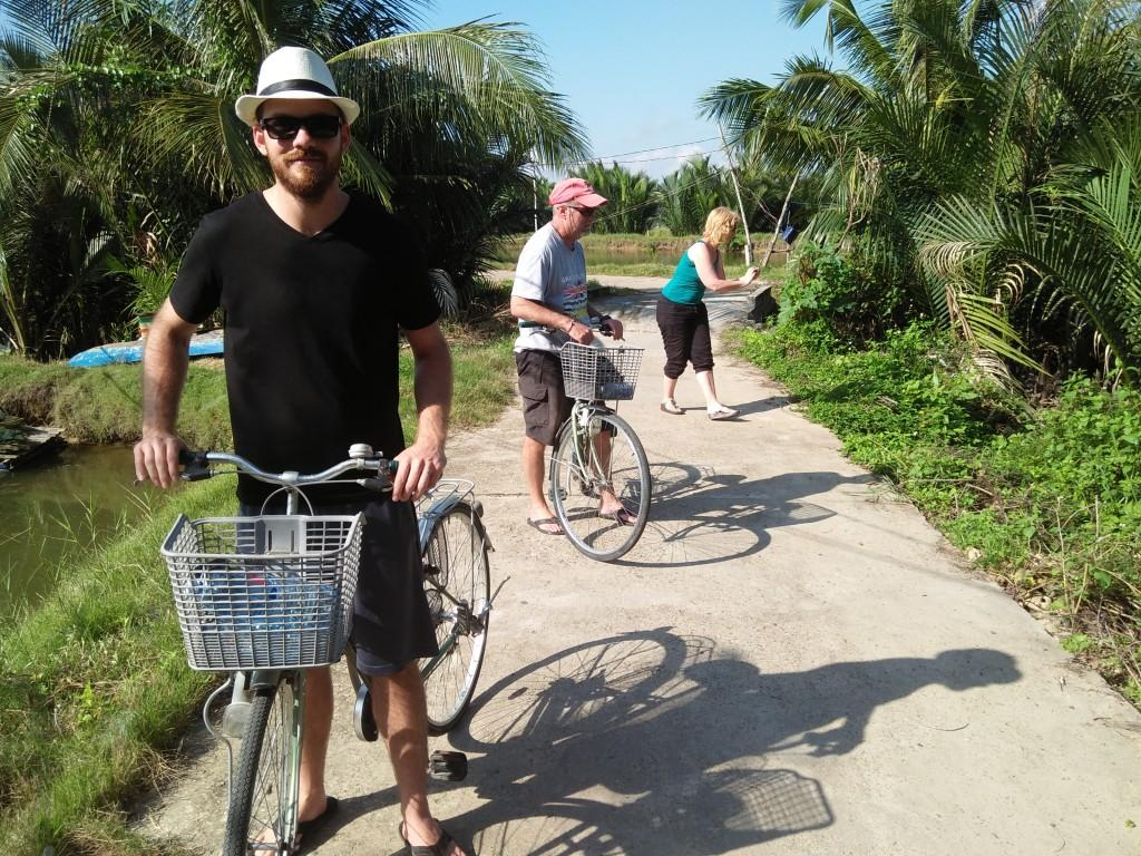 After meeting your guide at the hotel, you will travel by bicycle through the tiny village lanes to the river where you can learn about the daily life of the local people. Keep cycling through the cornfields, rice fields, water coconut forest, the lakes of shrimp and crab farm.