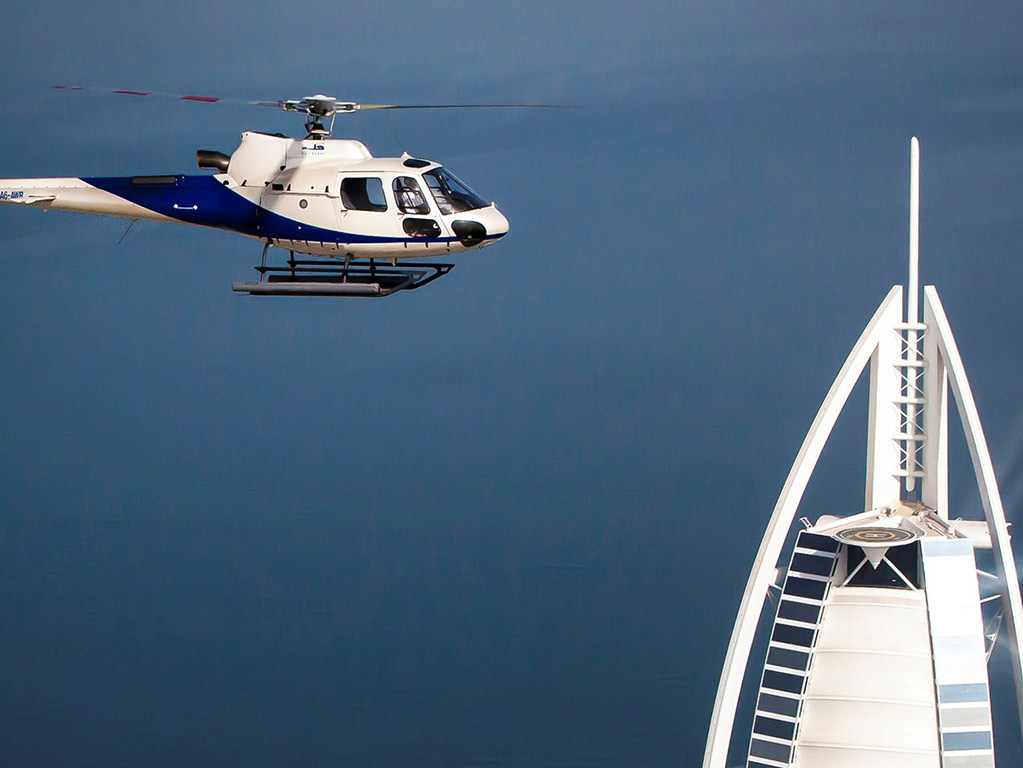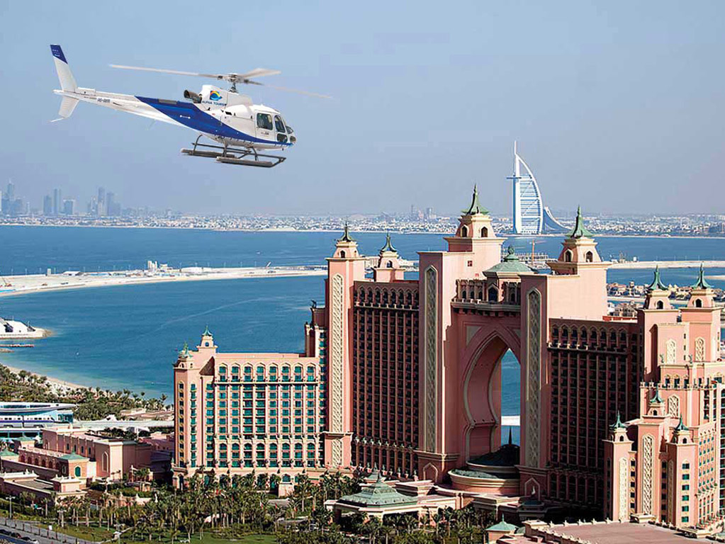Enjoy with us for a spectacular Helicopter tour and discover Dubai the world's new destination of leisure and business, a place of fascinating contrast, a distinctive blend of modern city and timeless desert, year-round sunshine and five-star luxury. Enjoy with us for a spectacular Helicopter tour and discover Dubai the world's new destination of leisure and business, a place of fascinating contrast, a distinctive blend of modern city and timeless desert, year-round sunshine and five-star luxury.Enjoy with us for a spectacular Helicopter tour and discover Dubai the world's new destination of leisure and business, a place of fascinating contrast, a distinctive blend of modern city and timeless desert, year-round sunshine and five-star luxury. Eye catching sight of the amazing Burj Al Arab Hotel, Jumeirah Beach, the Jumeirah Palm and many other landmarks from an eagle's eye perspective. You will witness current and future developments of the world's fastest growing region, the unfolding of a truly extraordinary city of the 21st century.