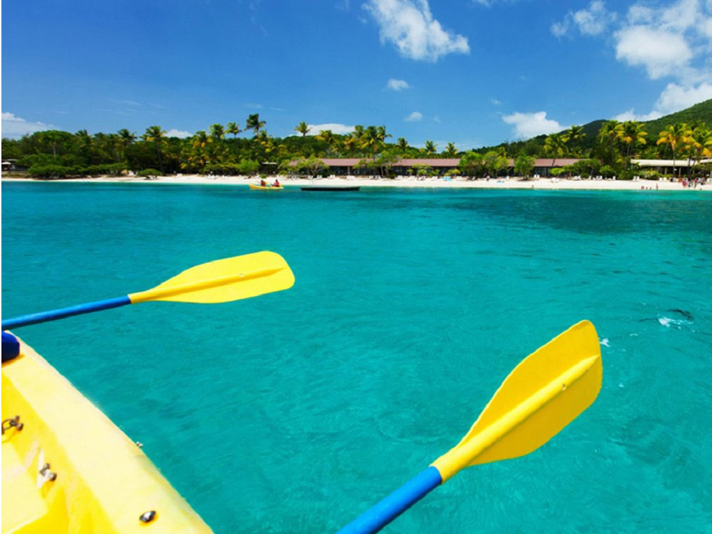 Snorkelers will discover an impressive collection of colorful corals including brain, pillar, sheet, star, and the endangered elkhorn and staghorn. From Henley Cay, you will paddle 20 minutes to Soloman Beach and enjoy your picnic lunch on an idyllic tropical beach with more fabulous snorkeling and a palm fringed soft sandy beach. Then a final 10 minute paddle will bring you back to Honeymoon Beach.