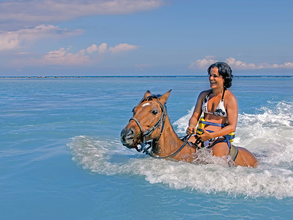 Saddle up for a spectacular horseback ride through the quaint farming village of Pumpkin Bottom. Explore the ruins of an 18th century sugar plantation and hear tales of Jamaica’s colorful history. Succumb to waves of excitement as you ride bareback into the warmth of the Caribbean Sea atop your swimming horse. No experience needed! Our well trained horses and attentive guides will ensure your comfort and safety during the best horseback riding Jamaica has to offer. Redeem informationVoucher type: E-VoucherE-voucher. Show the voucher on your mobile device to enjoy the activity.LocationStart point: Please note that this activity is not available for clients staying at any of the Sandals Resort hotels. Please all 48 hours in advance to confirm the pick-up time. End point: Same as the starting pointScheduleDuration: 2 HoursGuide optionsGuide type: GuideRequirementsMinimum Age: 6 years old RecommendationsRemember to bring sunscreen, swimsuit and towel, comfortable clothes and footwear as well as some extra cash.