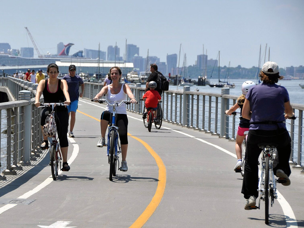 The Hudson River is one of New York’s most majestic icons, and we want to give you a front row view of the beauty and strength of the river. Rent a bike from the office conveniently located at Pier 78 in Midtown Manhattan, and bike the edge of the river, taking in all of the famous NYC sights along the way!