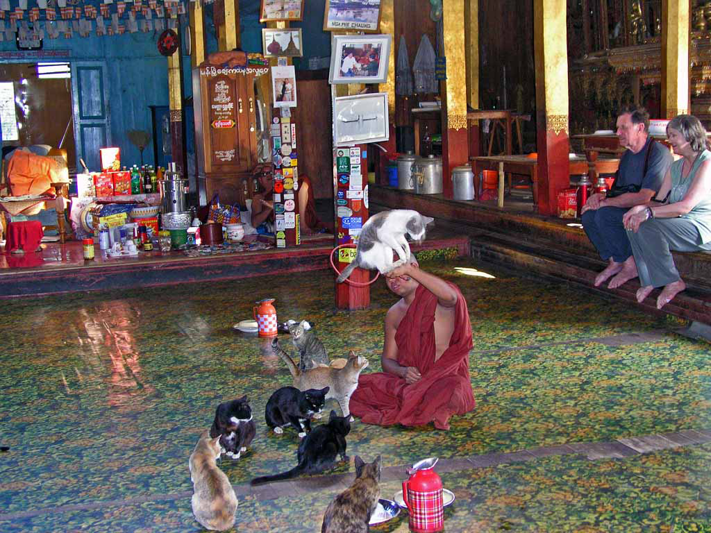 Take a leisurely boat ride and capture some picture perfect shots of the striking monuments and fisherman on a long wooden boat equipped with their bamboo fishing nets. You will explore the stilted villages among the waterways and meet friendly locals. Take a leisurely boat ride and capture some picture perfect shots of the striking monuments and fisherman on a long wooden boat equipped with their bamboo fishing nets. You will explore the stilted villages among the waterways and meet friendly locals.Take a leisurely boat ride and capture some picture perfect shots of the striking monuments and fisherman on a long wooden boat equipped with their bamboo fishing nets. You will explore the stilted villages among the waterways and meet friendly locals. Visit floating gardens and find out how vegetables and flowers are grown. Be inspired by ancient Buddha images at Nga Phe Chaung Monastery where cats have been trained to jump through hoops. Savor an authentic traditional Inthar noodles at a local Burmese café.