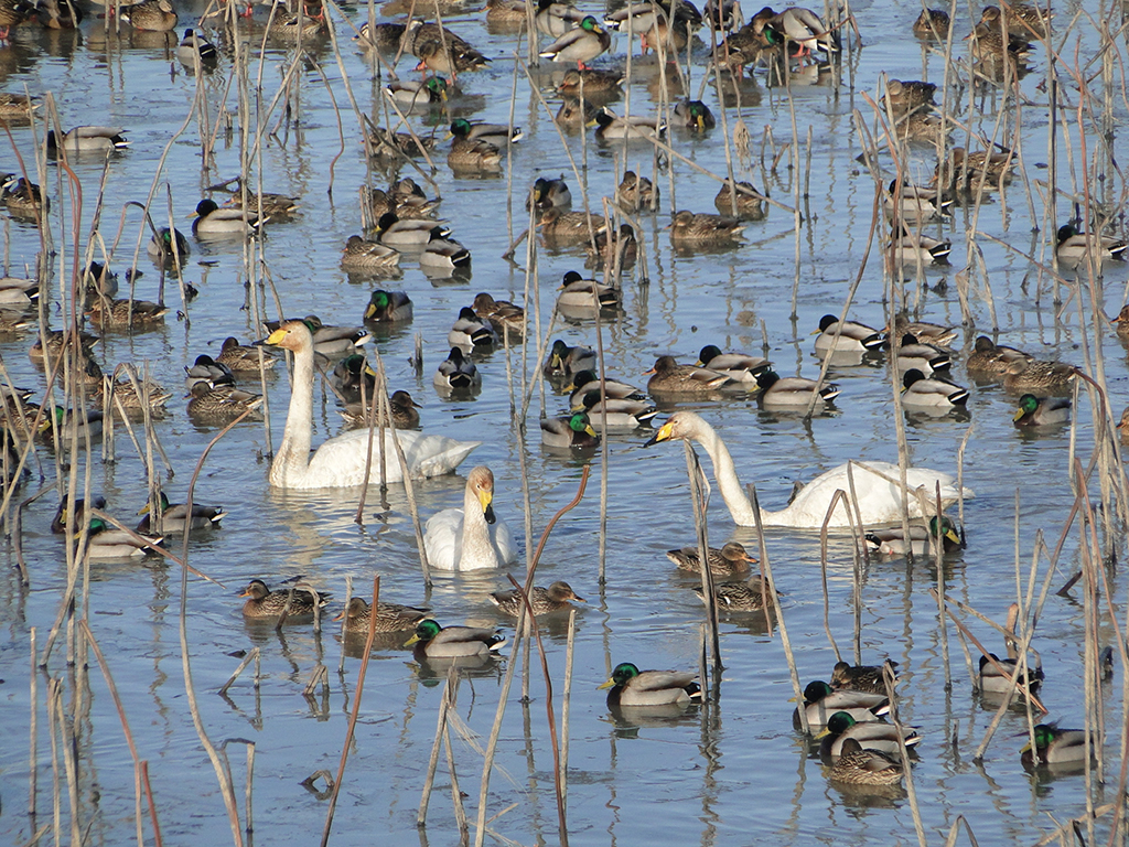 Featuring perfect conditions as a habitat of migratory birds, Junam Wetlands are crowded with tens of thousands of winter visitors in November every year. They spend the cold winter here until March next year. Therefore, people come here to see the amazing bird formation in winter. This year, in particular, the number of white-naped cranes (Natural Monument No. 203) and whooper swans (Natural Monument No. 201-2) significantly increased.