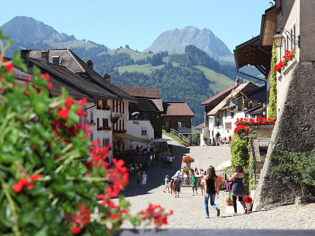 Then on your way to Gruyères, enjoy Swiss countryside taking a great big breath of fresh air. Be charmed by the real Switzerland, its green fields, its cows and Mountains. Get to a cheese factory to know more about the Gruyères: Le Gruyère AOP is a cheese with a long tradition and its making has been handed down over many generations of cheesemakers both in the alpine and village cheese dairies. You will reach the Moléson Mountain and have a tasting in a typical Swiss chalet, a friendly hand-making cheese factory and enjoy our typical dish: the Fondue.