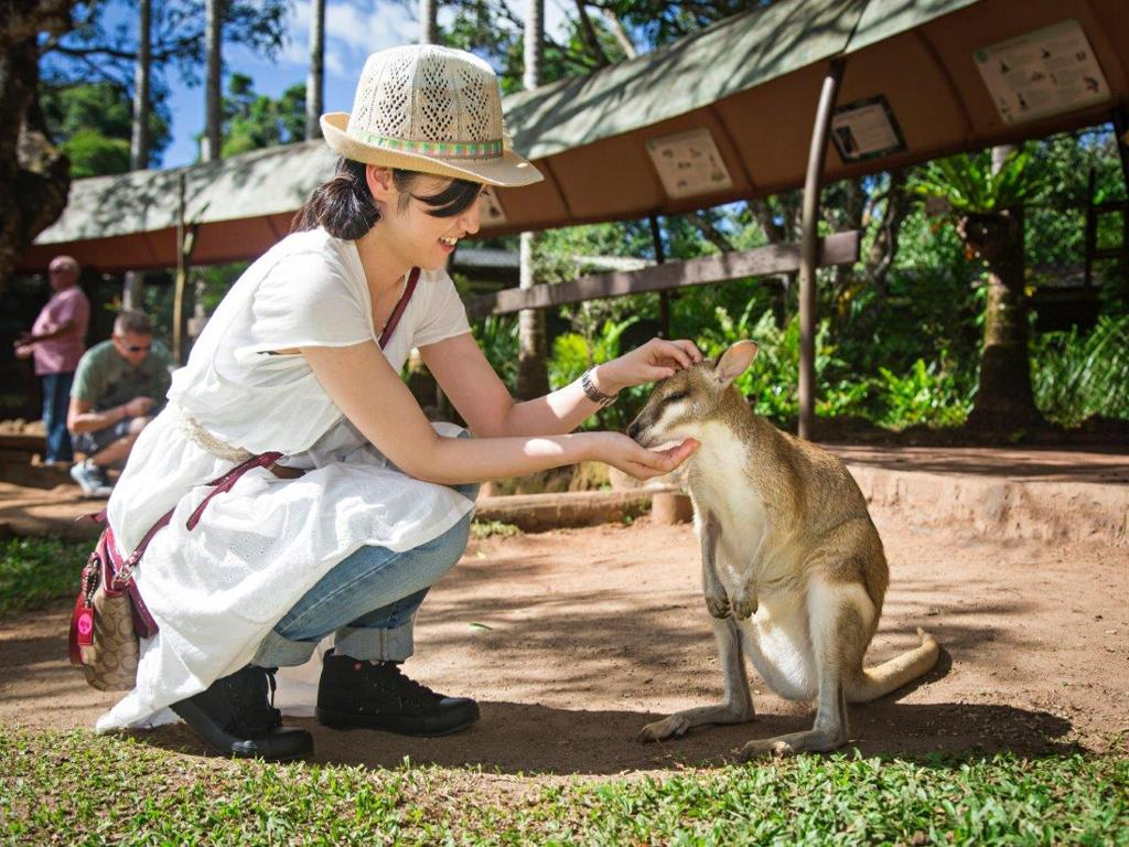 Join us for a full-day adventure to Kuranda, located in the middle of a World Heritage Rainforest and immerse yourself in an array of fun activities suitable for the whole family. Join us for a full-day adventure to Kuranda, located in the middle of a World Heritage Rainforest and immerse yourself in an array of fun activities suitable for the whole family.Highlights- Enjoy an unforgettable day out in the heart of the rainforest - Learn how to throw a boomerang - Embark on a unique tour on both land and water Enjoy the award-winning Rainforestation Nature Park, where you can board an amphibious World War II Army Duck for a unique rainforest tour on both land and water. Join a guided tour and see crocodiles, koalas, snakes, dingoes, a cassowary and the only Tasmanian Devils in North Queensland. Hand-feed kangaroos and wallabies, and even cuddle a koala!