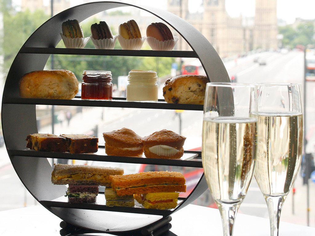 Indulge in the epitome of British tradition with Afternoon Tea with sandwiches, a scone, clotted cream, jam and tea or coffee plus a glass of Bubbly in the Georgian Restaurant at Harrods.