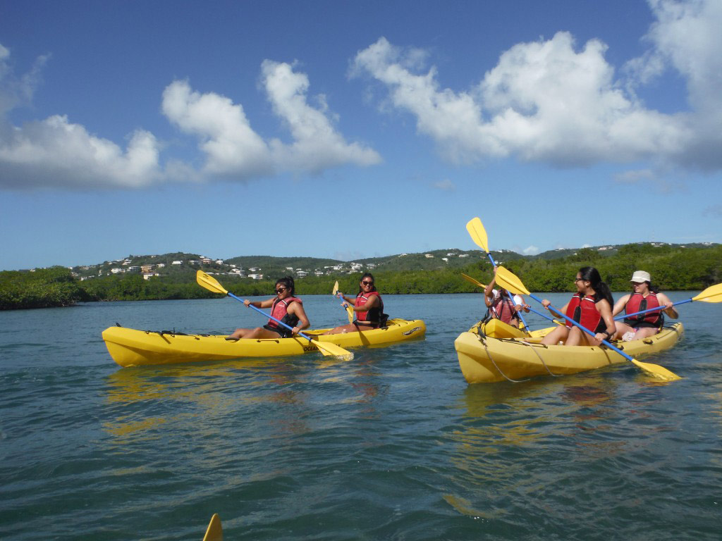 This is your chance to experience a favorite five hour unique, multi-eco trip in St. Thomas' Inner Mangrove Lagoon Sanctuary and the Island of Cas Cay. You begin by kayaking among the many small islands of the Mangrove Lagoon to Long Point and Patricia Cay. Enjoy breathtaking scenic views from the coral rubble barrier reef which divides Long Point, the southernmost tip of St. Thomas from the deserted island of Patricia Cay. Here you will find multitudes of coral and shells, as well as interesting marine life including bristle stars, sea urchins, chitons and perhaps an octopus in very shallow c This is your chance to experience a favorite five hour unique, multi-eco trip in St. Thomas' Inner Mangrove Lagoon Sanctuary and the Island of Cas Cay. You begin by kayaking among the many small islands of the Mangrove Lagoon to Long Point and Patricia Cay. Enjoy breathtaking scenic views from the coral rubble barrier reef which divides Long Point, the southernmost tip of St. Thomas from the deserted island of Patricia Cay. Here you will find multitudes of coral and shells, as well as interesting marine life including bristle stars, sea urchins, chitons and perhaps an octopus in very shallow cThis is your chance to experience a favorite five hour unique, multi-eco trip in St. Thomas' Inner Mangrove Lagoon Sanctuary and the Island of Cas Cay. You begin by kayaking among the many small islands of the Mangrove Lagoon to Long Point and Patricia Cay. Enjoy breathtaking scenic views from the coral rubble barrier reef which divides Long Point, the southernmost tip of St. Thomas from the deserted island of Patricia Cay. Here you will find multitudes of coral and shells, as well as interesting marine life including bristle stars, sea urchins, chitons and perhaps an octopus in very shallow clear waters.