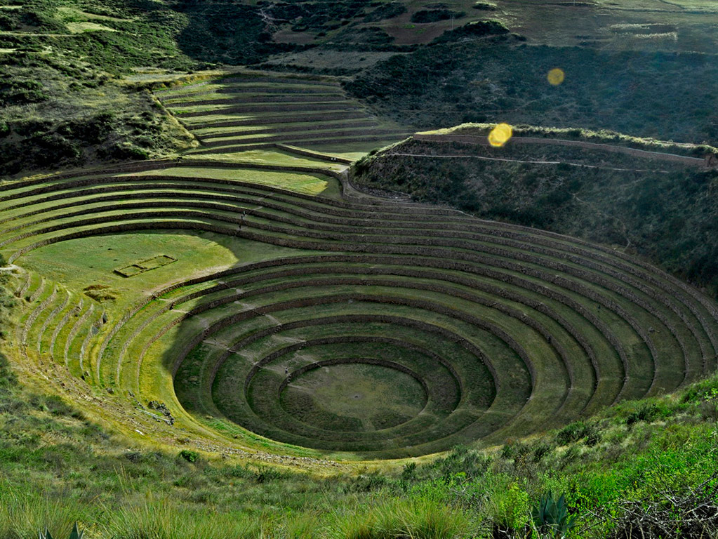 We welcome you to an hour and a half adventure of the tour of the archaeological sites of Moray and Maras. The archaeological remains of Moray consist of stone farming terraces formed in concentric circles, built around three gigantic holes, all at different levels. The largest of these contains 12 circular levels, to a depth of 100 meters. At the base of each hole is a system of drains to prevent the accumulation of rainwater. Experts say the site was a center for agricultural experimentation and the production of seeds from diverse climates, made possible by the different atmospheric conditions found on each terrace. Maras on the other hand contains unusual Inca ruins, mostly consisting of several enormous terraced circular depressions, the largest of which is about 30 m (98 ft) deep. The purpose of these depressions is uncertain, but their depth and orientation with respect to wind and sun creates a temperature difference of as much as 15 °C (27 °F) between the top and bottom. This large temperature difference was possibly used by the Inca to study the effects of different climatic conditions on crops. In other words, Moray was perhaps an Inca agricultural experiment station. As with many other Inca sites; it also has a sophisticated irrigation system.