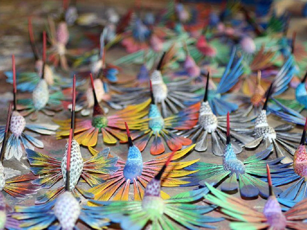 Arrazola is an artisan town.The shapes made of Copal are fantastically carved and painted, called Alebrijes.