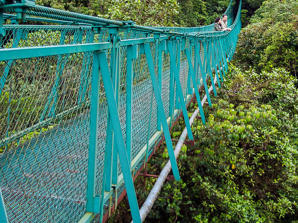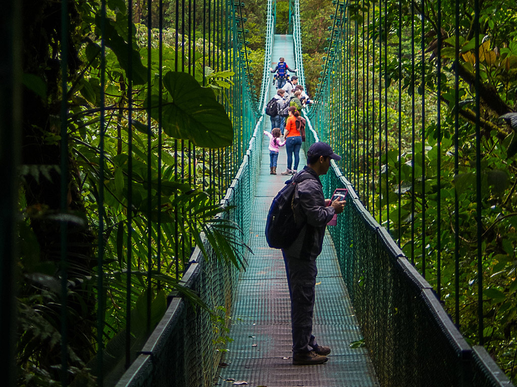 The Sky Walk tour guides will take visitors both through and above the cloud forest. A series of 8 suspension bridges, connected by trails totaling 1.9 miles (3 km) make this tour extremely feasible for anyone in moderate shape, provides a birds-eye view of the rainforest canopy and visitors will easily be able to study this unique tropical ecosystem, catching glimpses of birds, monkeys, sloths and more as they make their way across, do not forget visiting the Hummingbird Garden.
