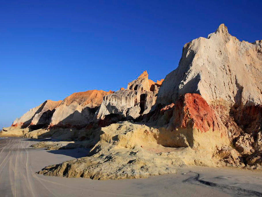 Marvel as you wind your way between the surreal peaks and valleys of rock that stretch the length of the beach. Eroded over time by wind and water, these extraordinary formations display colourful bands of sedimentary rock that can be seen nowhere else in the world. Along with its stunning natural beauty, Morro Branco is world famous for its intricate handmade sand artworks, delicately crafted inside glass containers. Of course no visit to this area would be complete without some serious beach and relaxation time, so don’t forget your swimsuit!