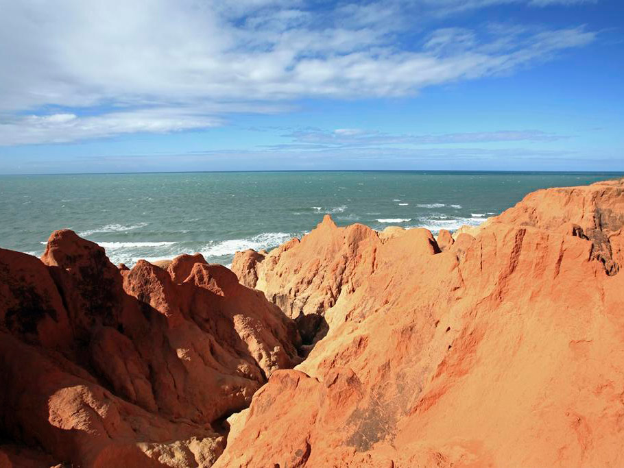 Become lost in the labyrinth of intriguing natural rock formations along Morro Branco beach in the beautiful district of Beberibe. About 50 miles from the city of Fortaleza, Morro Branco is one of the most breathtaking sections of the Ceara coast and has been the location for a number of Brasilian film and television productions.
