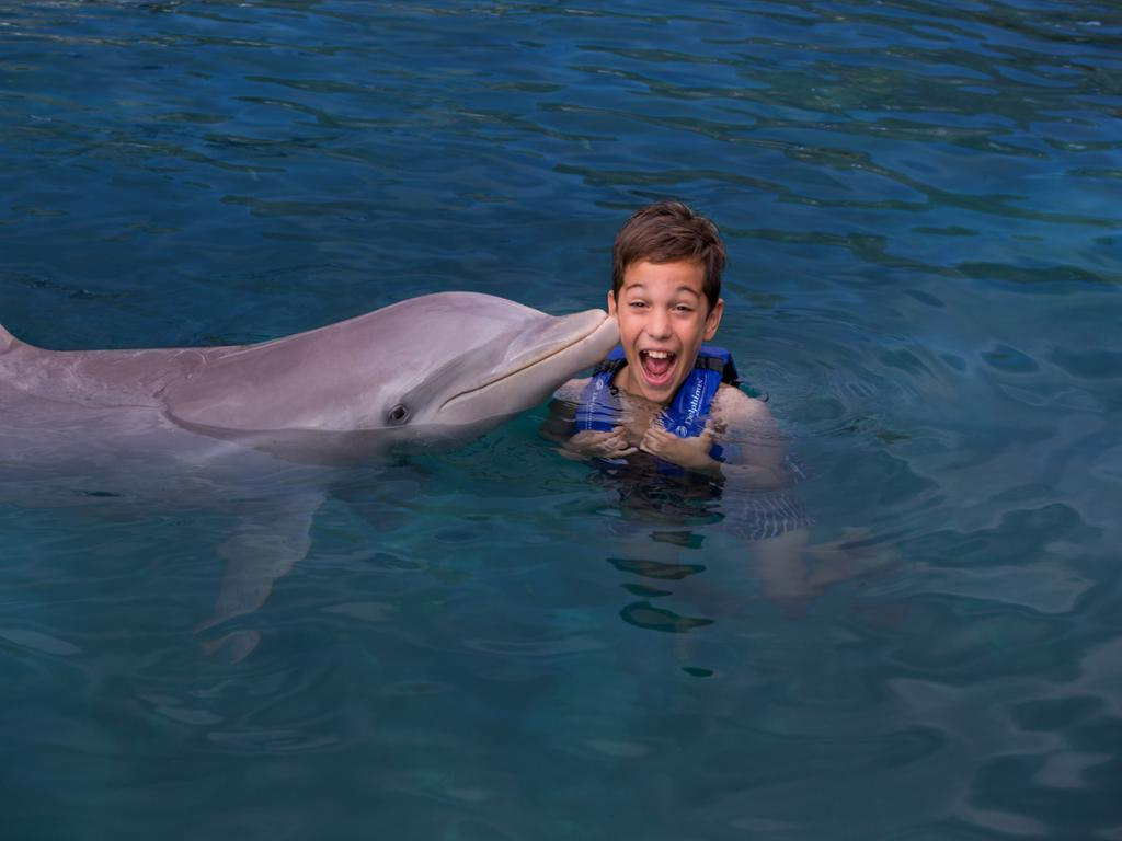 Swim freely with the dolphins, greet them, hug them, play with them and receive a dolphin kiss! 14 different activities to learn and enjoy.